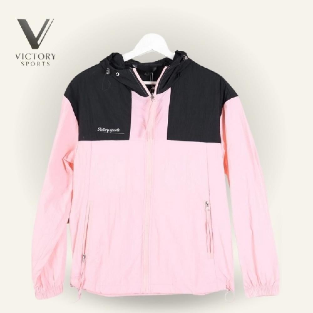 • شعار العلامة التجارية VICTORY SPORTS مطبوع بشكل أنيق على الصدر، ليعزز من الطابع الرياضي والفاخر للجاكيت ويمنحه لمسة تميز إضافية.